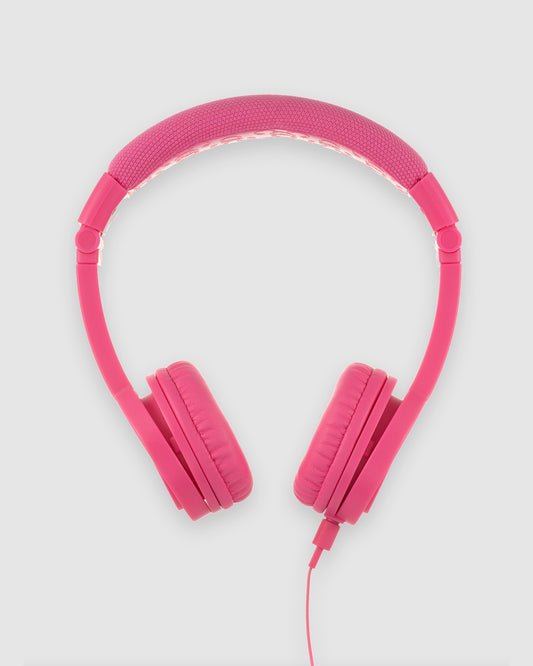 BuddyPhones Explore Plus Wired Foldable On Ear Headphones For Kids with Mic Pink