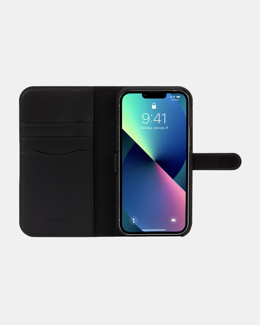 Coach Folio Phone Case for Apple iPhone 13 Signature C Black